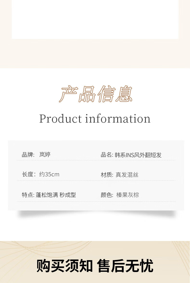 岚婷不用戴发网假发女士韩系外翻锁骨发自然随意分缝仿真人发整顶假发 法式刘海款 棕黑色 短发 35cm