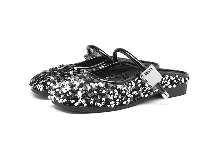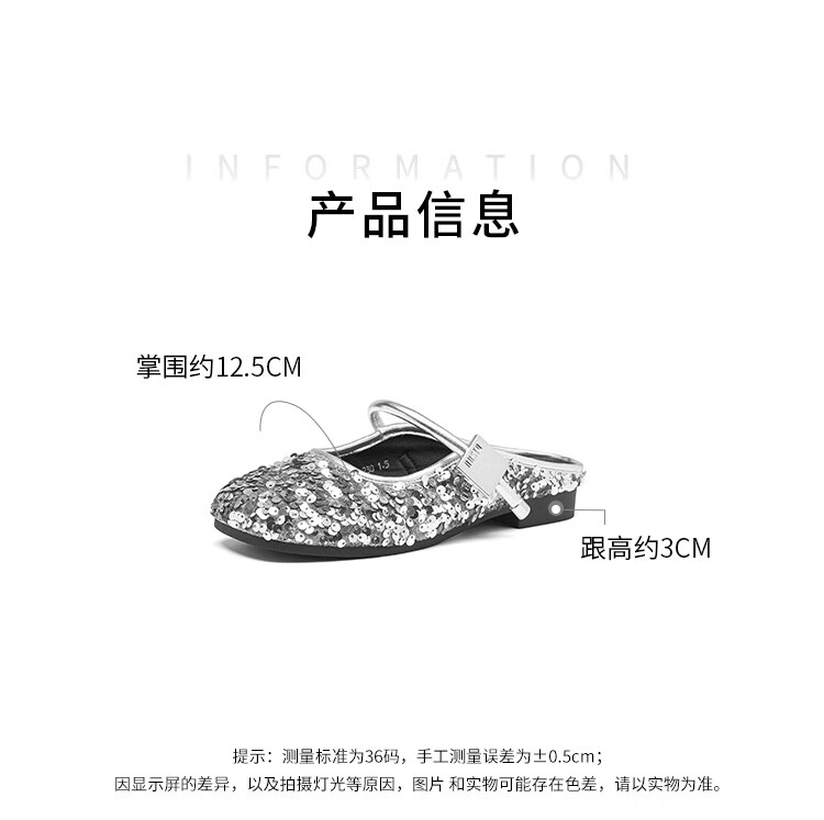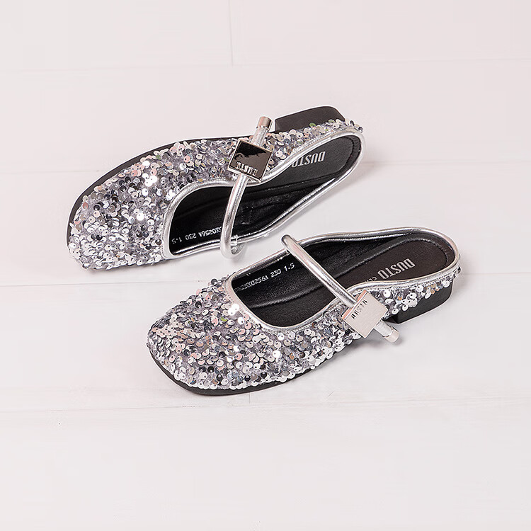 大东(dusto)低跟时尚休闲拖鞋2025亮片舒适轻便简约百搭包头女鞋0256 黑色 35